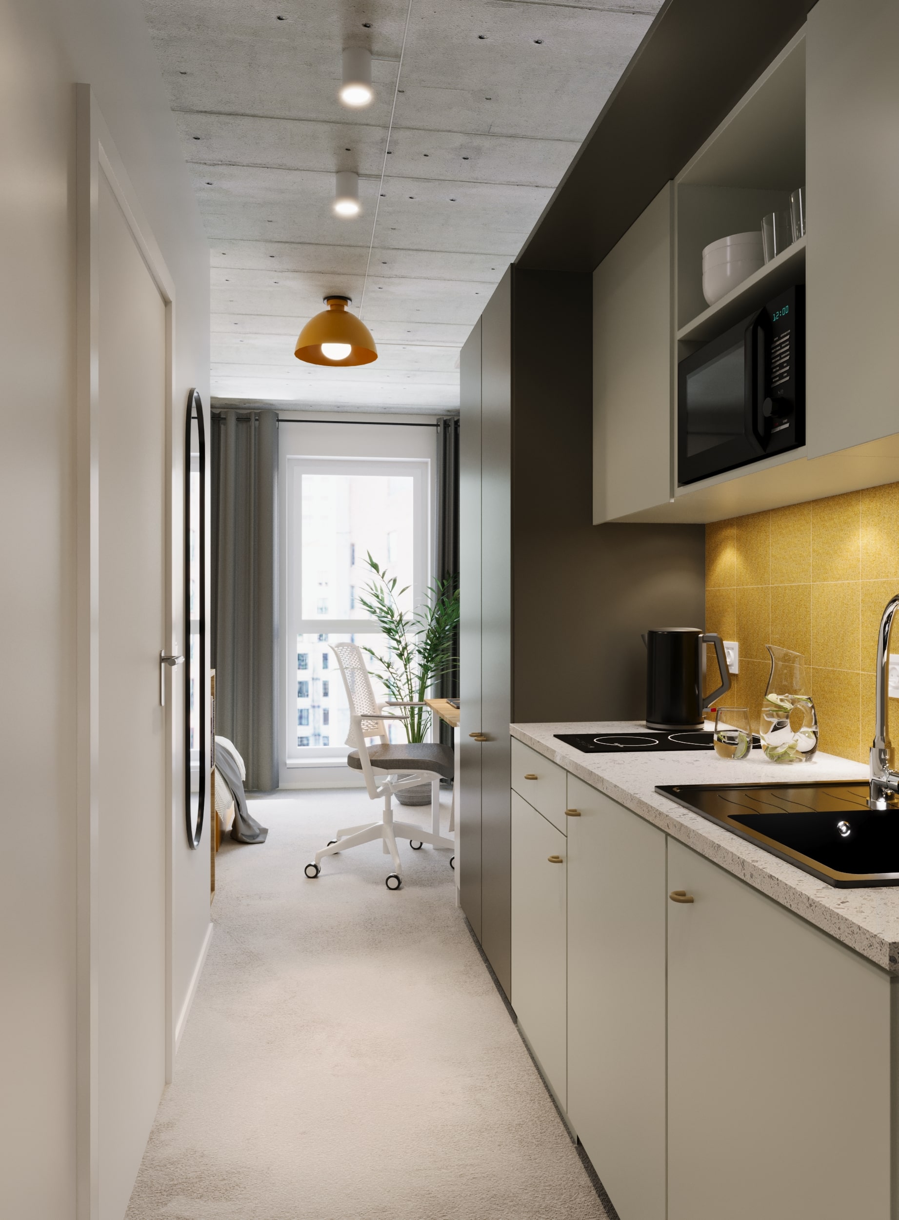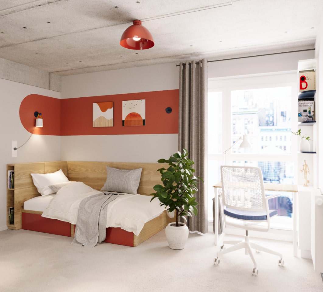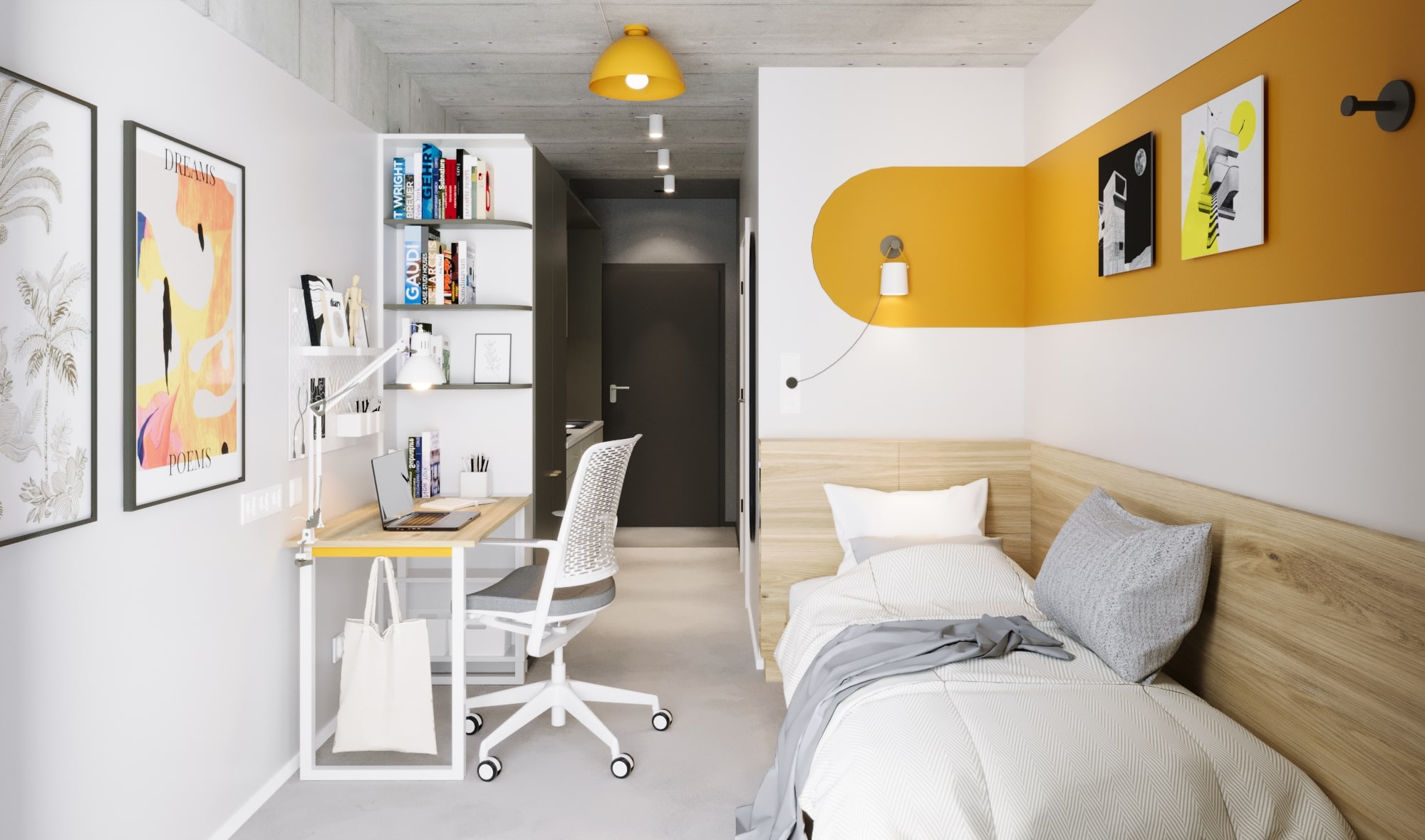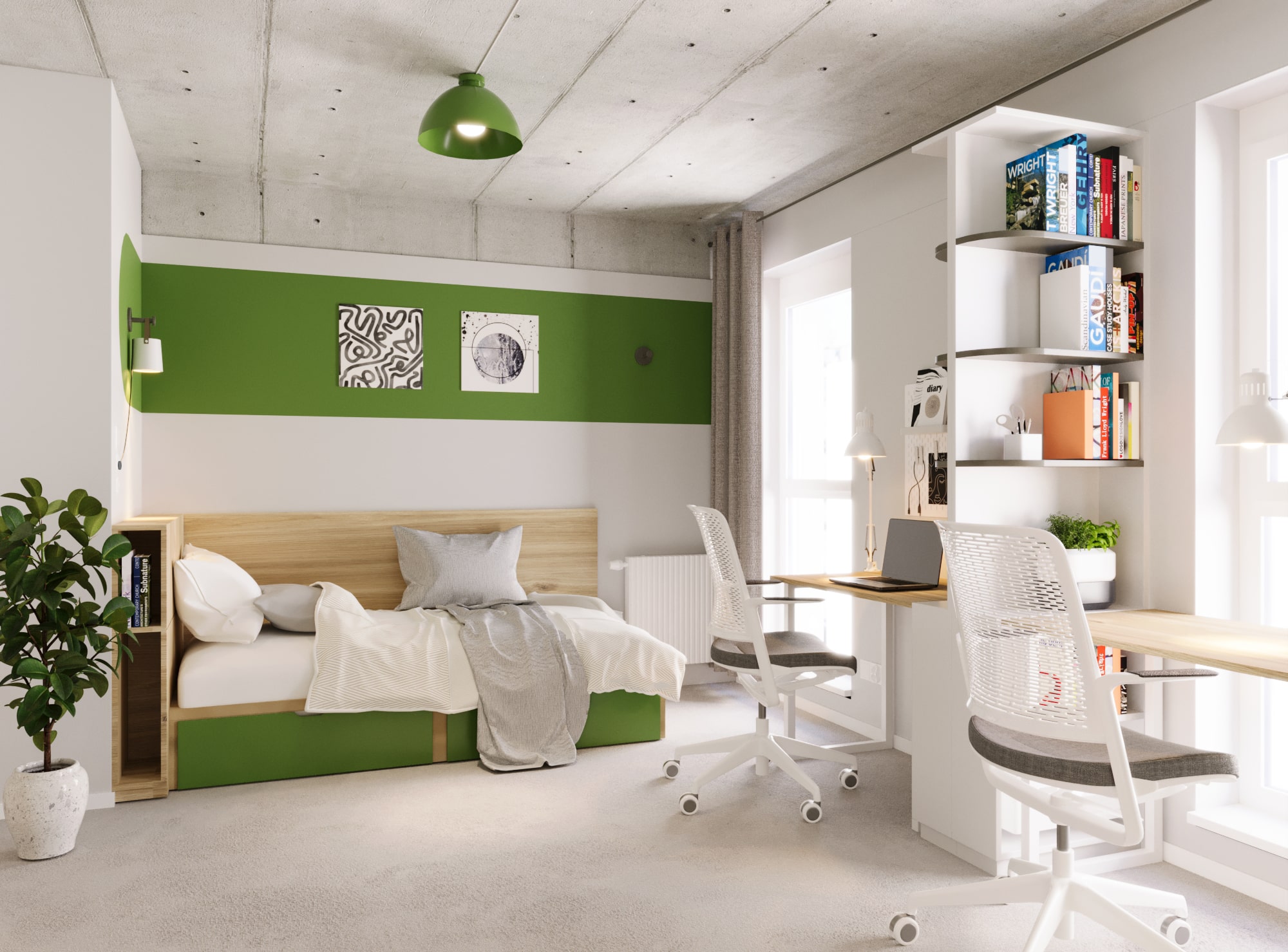 Nasze zadanie polegało na opracowaniu projektu wykonawczego oraz wizualizacji wnętrz prywatnego akademika w oparciu o konkretne wytyczne i standardy Inwestora.