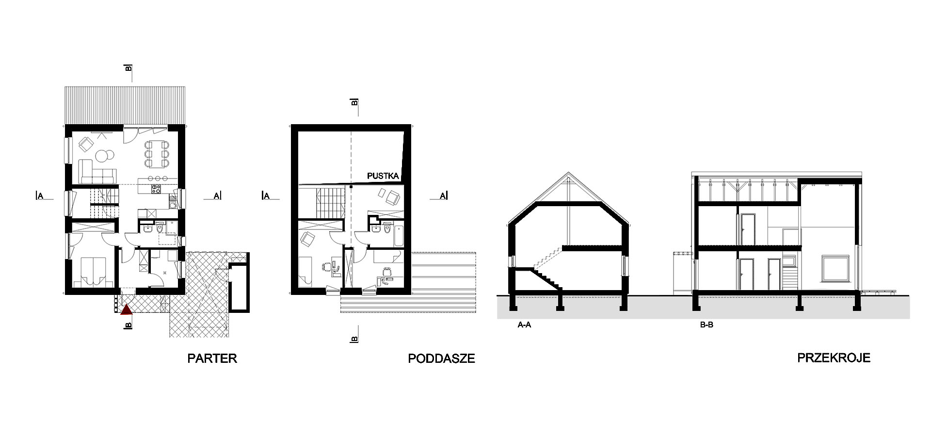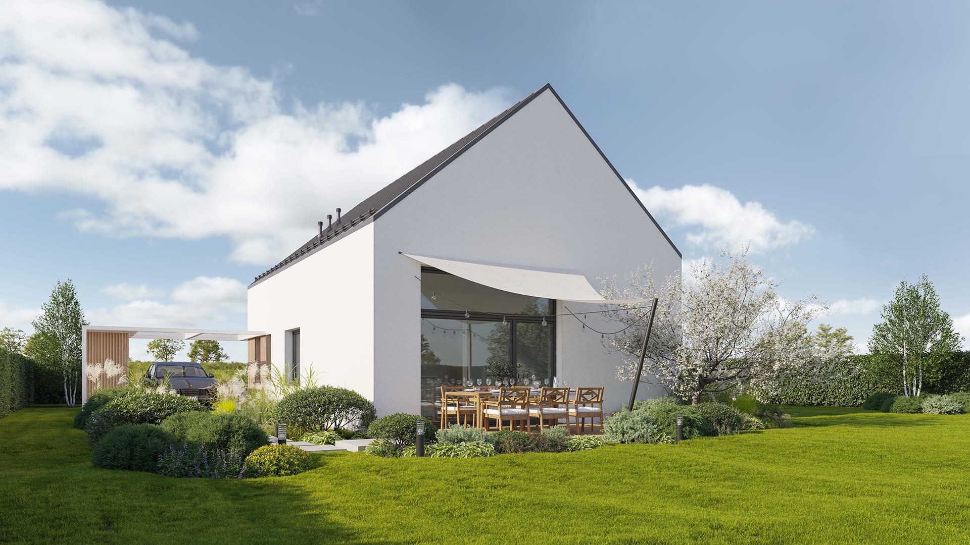 Celem było stworzenie projektu domu ekonomicznego w budowie i eksploatacji, a jednocześnie dobrze doświetlonego i dającego poczucie swobody.